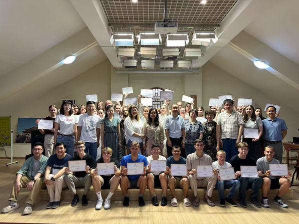• 近日,天外国际教育学院举行俄罗斯国立高等经济大学暑期夏令营结业仪式,国际教育学院副院长代秀敏,国际教育学院教师戈屹以及俄方营员共同参加仪式。结业仪式上,中外师生共同观看了精彩视频集锦,重温为期四周充实的学习生活。代秀敏在致辞中,赞扬留学生们良好的精神面貌和学习态度,大家在中国度过了一段愉快、难忘的时光,不仅提高了汉语水平,也收获了两国友谊,希望这份经历能够让同学们更全面、深入地了解当代中国,并热情鼓励大家将这份中国记忆带回俄罗斯。同时,欢迎同学们来我校进行进一步的深造,天外将是同学们永远的“家”。学生代表Ivonina Vlada表示,非常感谢在四周的学习生活中老师们的热情接待以及善意的关怀,学习期间自己的汉语水平得到提升,对中华文化也加深了理解。经济大学的同学们已经深深地爱上天津这座城市,爱上天外,期待能够在不久的将来再次回到这里,进一步感受中国的魅力。结业仪式上,中外师生一同欣赏了营员们准备的精彩节目,并为营员们颁发结业证书,现场氛围温馨热烈。此次俄罗斯国立高等经济大学暑期夏令营活动,不仅为俄罗斯学生提供了宝贵的学习机会,也为中俄两国文化交流搭建了桥梁。这段经历将成为留学生们一段难