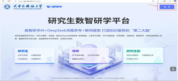 为深入推进AI赋能学科内涵建设,促进研究生教育高质量发展,学校联合中国知网研学平台×DeepSeek,开通研究生数智研学平台体验版,为提升教师数智素养、助力研究生科学研究、丰富学术资源模态与提高师生研学效率注入新的动能。研学平台聚焦资源汇聚、文献研读、智能写作、多端同步四大核心场景,面向师生打造一站式、智能化的学习平台,全面提高研学效率,加快知识创新。体验方式如下:1.打开网址:https://yjs.cnki.net/tjfsu点击右上角【登录】,注册或登录个人账号,选择学生/教师身份,填写姓名、学号/工号后进入系统,点击左侧导航栏--【研究生数智研学平台】开始体验。2.打开网址:https://grad.tjfsu.edu.cn/登录乐玩在线(中国)唯一官方网站研究生院,点击研究生数智研学平台开始体验。3.打开手机应用商店,搜索app【知网研学】,下载体验。今后,学校将继续探索AI在学科建设与研究生培养等方面的深度应用,欢迎广大师生积极试用体验!(通讯员/金欣 内容审核/冯鹏 蒋天皓 杨丽娜)(网页编辑/庞轶丹)