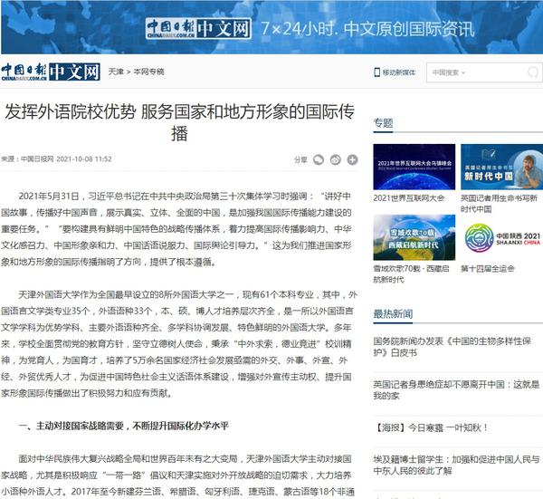 10月6日上午,市委教育工作委员会、市教育委员会一级巡视员刘欣一行来我校调研留学生工作,校党委书记殷奇、副校长李迎迎全程陪同。殷奇就我校进一步加强和改善在津留学生管理工作的进展情况,留学生工作的特点、难点以及面临的问题进行了汇报,并介绍了今后将充分利用语合中心项目大力发展线上留学的工作思路。刘欣详细了解了疫情以来我校留学生教育教学和管理工作的开展情况,询问了留学生管理的相关规章制度和管理流程,并走访了留学生宿舍,查看了国际交流中心的公共设施。在走访过程中,刘欣同我校留学生进行了亲切交谈,询问留学生在天外的学习生活情况。市教委一行还深入课堂了解留学生实际上课情况,并和留学生合影留念。调研结束后,刘欣对我校的留学生教育和管理工作予以了充分的肯定,同时希望我校进一步做好疫情防控常态化下的留学生疫情防控、日常服务管理和线上线下教学等工作,组织丰富的留学生活动,加大宣传力度,提高宣传效果,扎实推进留学生工作的提质增效。我校领导感谢市教委给予留学生工作的关心、支持,并表示将以此次调研为契机,进一步加强留学生教育和管理的规范化、专业化、人性化,提升管理服务水平,并结合我校特色,发挥优势,推进外国留学