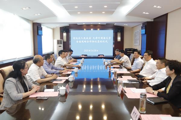 5月28日上午,我校与河北区人民政府举行全面战略合作协议签约仪式,就进一步深化校地合作进行座谈交流。河北区区委书记刘志强,区委副书记、区长徐刚,区委常委、区委组织部部长赵鸣,副区长刘冬云,我校党委书记殷奇、党委副书记、校长陈法春、副校长程国毅出席。会上,刘冬云和程国毅分别介绍了双方合作对接的相关情况。与会人员就全面战略合作相关事宜以及双方优势互补、共同发展等工作进行了深入交流。徐刚与陈法春代表河北区人民政府和乐玩在线(中国)唯一官方网站进行了签约。殷奇、陈法春表示,长久以来我校与河北区建立了良好的合作互动关系,天津外大附属外国语学校在区域强有力的支持下,办学竞争力、影响力不断提升。期待以此次签约为新的起点,充分发挥我校教育人才等资源优势,与河北区开展更广泛更深入的合作,为河北区教育事业发展做出新的更大贡献。刘志强、徐刚对我校一直以来给予河北区的支持表示感谢。他们强调,教育兴则全区兴,近年来,河北区坚决贯彻落实习近平总书记关于教育的重要论述,持续加大工作力度,推动教育事业高质量发展。希望今后进一步加强与我校的交流与合作,全力以赴做好服务,将我校及附属外国语学校先进的办学理念、办学模式、办学特色在河北区