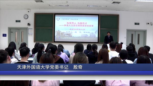 为贯彻落实习近平新时代中国特色社会主义思想,喜迎建党100周年,按照市教育两委《关于开展“百年行动”思想政治理论课特色案例和品牌课程征集展示活动的通知》要求,近日,一场题为《为党育人 为国育才------外语人以语言服务国家的故事》品牌思政课在我校逸夫楼AX101开讲,校党委书记殷奇,校党委副书记、校长陈法春担纲主讲、同台授课。 课程分为“回眸历史 追根溯源”“筚路蓝缕 桃李争芳”“勇于担当,‘译’往无前”三个篇章。“全国三八红旗手”、天津市优秀共产党员、天外志愿翻译突击队领队孙倩,曾参与全国人大十二届二次会议文件及2014年政府工作报告阿拉伯语翻译工作、亚非语学院院长朵宸颉,曾参与《中华人民共和国大事记(1949年10月-2019年9月)》和《中国共产党历史(第二卷)》等英文翻译工作、高级翻译学院教师、中央文献翻译研究基地在读博士生华云鹏参与课程讲授。 殷奇从优秀校友的故事谈起,回顾了学校建校以来,坚持立德树人根本任务,秉承“中外求索,德业竞进”校训精神,为党育人、为国育才的发展历程。他指出,一代代天外人在对外讲好中国故事、服务党和国家的重大发展战略中展现了担当与作为,在中国共产党成