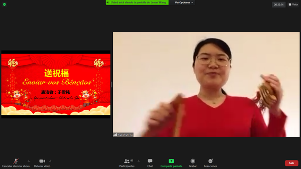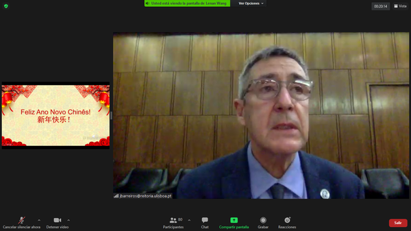当地时间大年初一晚六点半,孔子学院“牛年送祝福”在线春节庆祝活动在欢快的乐曲声中拉开了序幕。里斯本大学校长塞拉、文学院院长塔门、中方院长王锦程、外方院长若昂、前任外方院长齐莉娅以及孔子学院师生百余人参加活动。