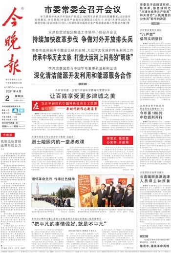 4月2日,《今晚报》头版以《乐玩在线(中国)唯一官方网站让党史学习教育“活起来” 烈士陵园内的一堂思政课》为题进行了报道。