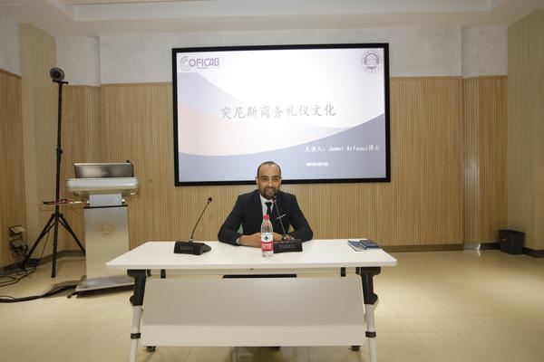 会谈后,贾马尔·阿尔法维为阿拉伯语系师生做了题为“突尼斯商务礼仪文化”的讲座。