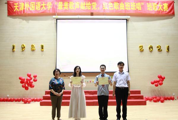 比赛在同学们对祖国的深情歌唱中拉开帷幕,《少年中国说》铿锵有力,《唱支山歌给党听》宛转悠扬,改编歌曲《党旗飘扬的方向》用双语表达了对祖国的热爱,《在希望的田野上》以歌伴舞形式展现出人民对于建设美丽家乡的热情和斗志,《没有共产党就没有新中国》唱出了青年学子感党恩、听党话、跟党走的坚定信念。活动最后,全场挥舞小国旗,齐声高唱《我和我的祖国》,将气氛推至最高点,师生共同用歌声表达对党的百年华诞最真挚的祝福。