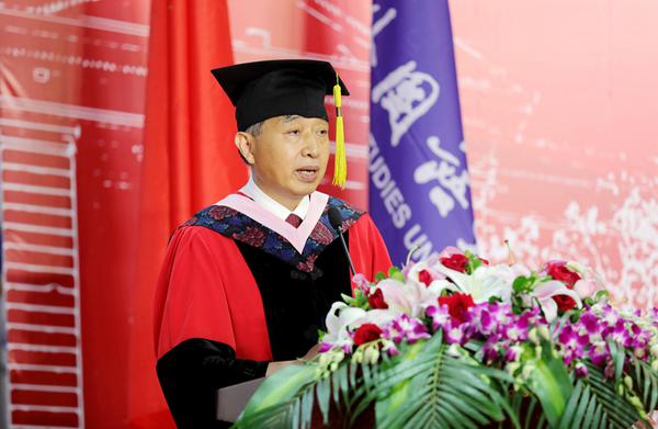 校长陈法春以《胸怀千秋伟业 不负百年风华》为题,为毕业生精心准备了“最后一课”。他向全体毕业生圆满完成学业表示最热烈的祝贺,并提出殷切寄语:一是修德,要心怀“国之大者”,做有理想的时代新人;二是修业,要答好“时代之问”,做有本领的时代新人;三是修身,要肩负“吾辈之责”,做有担当的时代新人。希望毕业生接过时代的接力棒,保持不断向上的力量,博取古今中外文明精华,内外兼修,厚德博学,永葆生机与活力,为国家繁荣、世界和谐贡献力量。他为毕业生送上美好祝愿:“德业双臻天外翥,鹏程九万赛龙骧!”