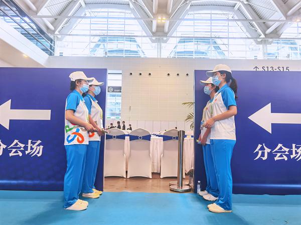 6月22日起,我校近500名志愿者与12名督导教师全身心参与到展会志愿服务活动中,擦亮了最美的“天外名片”。证件管理组志愿者负责协助观众自助打印、办理证件、完成身份核验等,从“首关”到“守关”,不变的是心中的责任与脸上的微笑;宣传推广组志愿者负责媒体指引、接待、采访、直播等工作,他们以饱满的精神认真对待每一次活动,助力媒体传播好首展声音;环境保障组志愿者负责展馆内观众咨询与就近指引、各区域垃圾分类引导等工作,他们为展会营造整洁舒适的环境,共筑垃圾分类新风尚;餐饮服务组志愿者负责团组餐饮服务接待及商街、非遗展区迎宾接待等工作,吃苦在前、享乐在后,他们是最靠谱的后勤保障团队。虽然岗位职责有所不同,但全体志愿者和督导教师以认真严谨的态度、踏实勤恳的作风与热情周到的服务,圆满完成各项任务,获得了组委会与参会人员的认可,以实际行动兑现了出征仪式上的铮铮誓言。