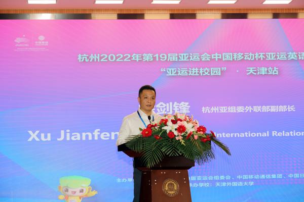 正值全国人民欢庆中国共产党百年华诞之际,7月2日,我校携手杭州亚组委、中国日报社、21世纪报社及中国移动通信集团有限公司,在马场道校区大学生活动中心举办杭州2022年第19届亚运会中国移动杯亚运英语之星大赛“亚运进校园”天津站宣讲活动。杭州亚组委外联部副部长徐剑锋, 21世纪报社总编辑曾庆锴,21世纪英语教育传媒总经理王蕾,中国日报社天津记者站首席记者杨成,校党委副书记胡志刚出席,各学院学生代表、校学生会骨干等200余人参加了宣讲会。会议由校团委书记梁燕主持。