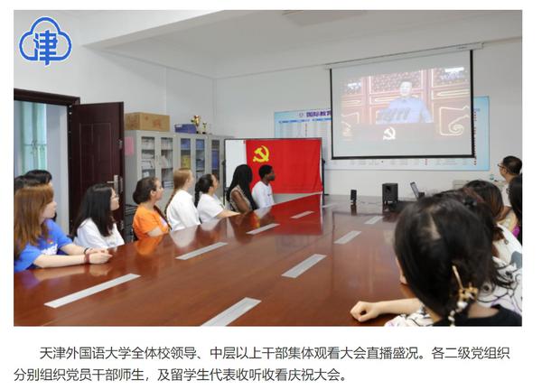 7月1日上午8时,庆祝中国共产党成立100周年大会在北京天安门广场隆重举行,天津广大党员干部群众收听收看大会直播,第一时间了解大会盛况。我校师生通过多种渠道同步收听、收看了直播盛况,共同庆祝中国共产党成立100周年。“津云”客户端对此进行了报道。