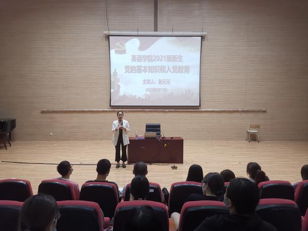 9月16日、17日中午,英语学院连续举办两场以“献礼建党百年 赓续红色基因”为主题的新生入党启蒙教育讲座。学院党委书记郭芃、组织员赵元元分别主讲,英语学院全体新生参加。
