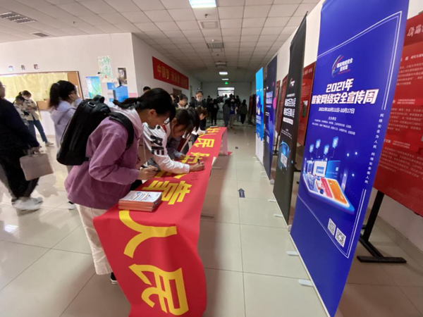 为通过形式多样的网络安全教育活动,提高广大师生网络安全意识、实践能力、防护技能和网络素养,日前,“网络安全为人民 网络安全靠人民”主题签名活动在两校区教学楼一楼大厅开展,同时发放网络安全知识手册,受到师生广泛关注。