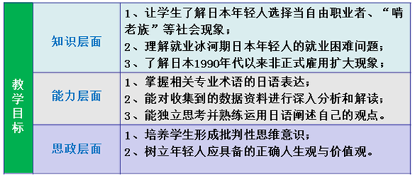 思政总结:让学生正确认识日本社会,通过比较、分析,较为理性与客观辩证地看待中国的实际情况。以日本为镜子,反观中国的年轻人现状,并与日本进行比较,深入思考当下这一热门社会话题。引导学生面临学习、生活、就业等问题时作出正确判断与应对策略,积极向上,不做“啃老族”,树立当代年轻人应具备的正确人生观与价值观。