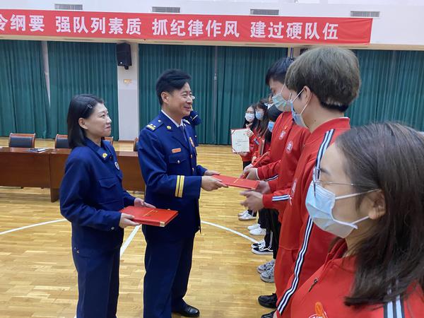 这是一场新时代青年的互动交流。会上消防支队领导为我校青马学员代表颁发“消防志愿者”证书。座谈交流中,指战员代表刘振雷、梁鹏、汤立旺依次发言,讲述了他们与险情的一次次艰苦搏斗和守护人民生命财产的真挚初心,让在场同学红了眼眶。青马学员代表叶子涵发自肺腑的致谢和做好消防宣传的决心深深感动了指战员们,宋泽宇分享了自己身为蓝天志愿救援队成员的真切感悟。消防队员和青马学员是朝气蓬勃的同龄人,更是可堪大任的新时代青年。