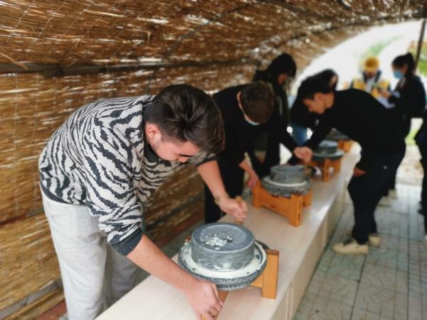 摘玉米、抓河蟹、磨豆浆、烤地瓜等活动,让留学生们感受到了人与自然的和谐共生、朴实节俭的传统农家生活,以及绿色农业、循环永续的耕作理念。期间还安排了制作芦苇茶席垫、玉米拼字及制作心形寿司等趣味活动,以新颖的形式真正地让学生近距离地感受中国传统的农耕文化,在欢声笑语当中体验我国农业文化的精华与智慧。