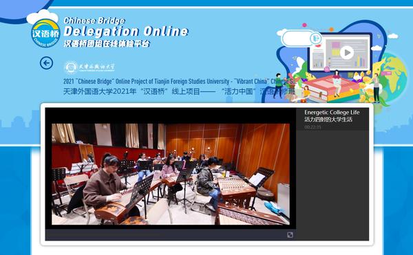 “汉语桥”是教育部中外语言交流合作中心组织的重要平台,为中国与世界各国青年之间架起了一座沟通心灵、增进交流的桥梁。继续教育学院作为语言培训的教学单位,积极承接“汉语桥”项目,搭建中日、中外学生文化交流平台。“活力中国”汉语研习班是进一步推进中日两国文化交流,向世界推介中国,向世界展示活力中国的文化体验活动。继续教育学院按照项目要求,精心制作舌尖上的早餐、火爆全网的零食、美丽乡村、校园生活、广场舞、共享交通等八个共200余分钟的网上学习视频。11月15日至21日,研习班组织学员们通过云端开展为期七天的线上学习交流,学说中国话,学唱中国歌,同时在线学习太极拳、京剧,感受具有中国与天津地方文化特色的建筑、饮食、民俗等,带领日本学员感受博大精深的中华文明和真实的中国,增进日本学生对中国语言文化的了解,进一步促进国际中文教育发展与中外人文交流。