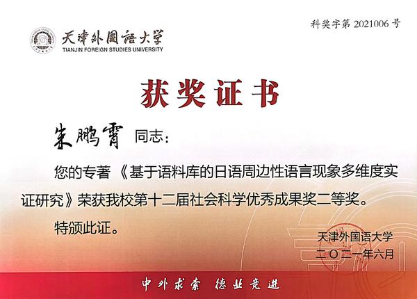 专著《基于语料库的日语周边性语言现象多维度实证研究》,ISBN:978-7-5213-0912-6 ,页数264页,外语教学与研究出版社,2019年7月出版。