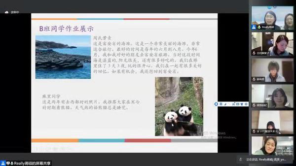 学员们进行了成果展示、心得交流。内田公美和柴田奈绪美两位学员分别描述了在天津黄崖关长城和青海见到的美丽景色;渡边麻衣和谷腰彩同学介绍了中国美食;周氏芳青向大家推荐了越南度假的好去处富安省。对于此次线上汉语课程,近藤布実、洼园由希、吉田真梨子、江口奈津希、阮氏娥等学员用流利的中文发表了感想,他们感谢“活力中国”汉语研修班组织开设的“太极拳”“京剧”等直播课及特色早餐、美丽乡村、共享交通、全民健身等录播课程,使得他们感受到中国传统文化的风采,对天津有了更深入的了解,同时她们对任课老师的悉心指导表示感谢,使他们的汉语综合能力有了显著提升。在才艺展示环节,学员们一起演唱了《七里香》《Mojito》《月亮代表我的心》等歌曲,主讲教师对学员们的表现做了点评。气氛热烈的猜词比赛将闭幕式推向高潮,闭幕式在愉快和感动中落下帷幕,学员们满怀憧憬地期待着下次汉语桥课程,期待进一步学习汉语与中国文化。