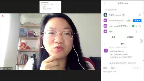 11月16日晚,“中国六座古城穿越之旅”汉语桥线上团组项目开营仪式结束后,学员们随即开始首日课程。我校国际合作与交流处教师李朋、欧洲语言文化学院西班牙语系主任张鹏教授、哥伦比亚塔德奥大学孔子学院中方院长王瑜琴为学员们直播授课,分别结合“留学天外”“‘一带一路’建设背景下的中拉关系”和“孔子学院以及疫情时期的汉语学习”等主题开展讲座。