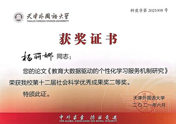 杨丽娜,通识教育学院,教授,管理学博士,教育技术学博士后;研究方向为教育信息化、教育大数据、个性化学习、精准推荐。
