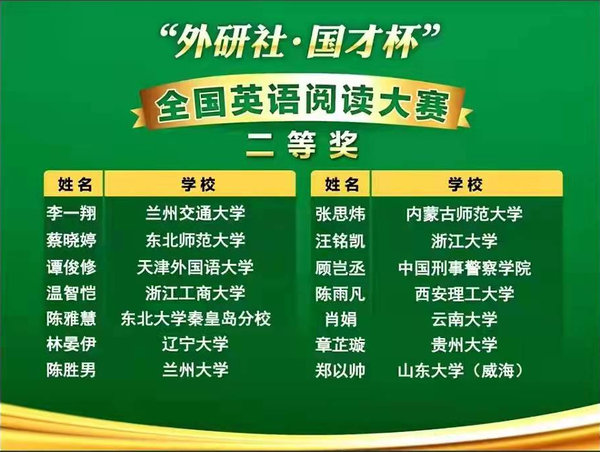 本次大赛采用线上形式进行。谭俊修在英语学院周薇副教授的精心指导下,顺利通过校内选拔赛和天津市复赛,并以市复赛第一名的成绩决战云端,与来自上海复旦大学、北京外国语大学等高校的选手一起,把脉文本,激荡灵感,最终荣获全国总决赛二等奖,展现了良好的专业素养和稳定的心理素质。这也是我校专业英语教学成果的一次亮相展示。