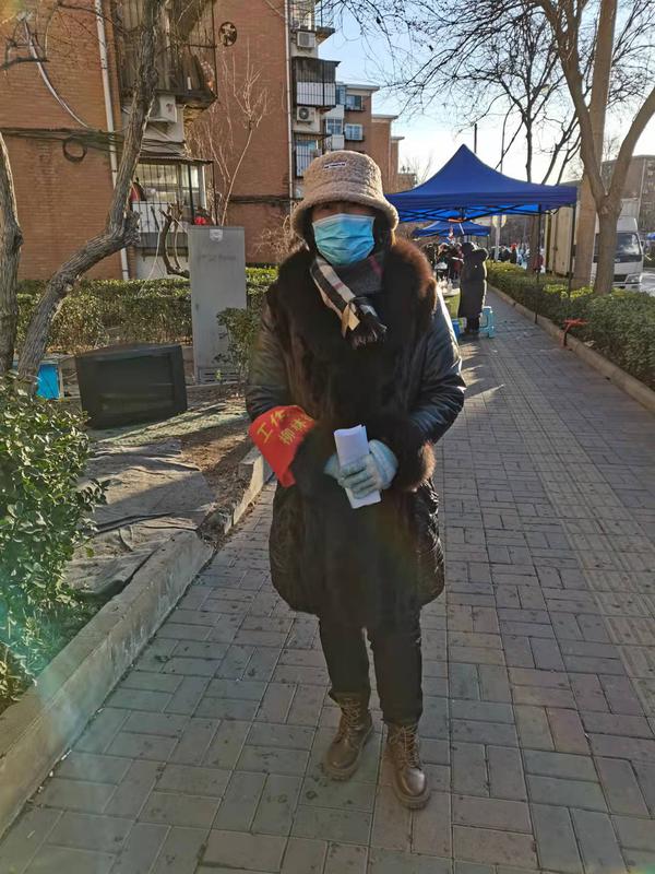 国际关系学院政管系教师党支部党员靳利华已经50岁了,家住河西区连荣里社区。根据学校党委党员干部下沉所在社区的工作部署,靳利华第一时间主动联系社区党组织并积极参加社区核酸筛查相关工作。1月9日上午9点,她与其他志愿者一起,到本社区德恩公寓3门进行入户核酸筛查扫码登记服务,帮助操作不便的老人进行系统登记。1月10日晚,靳利华再次不顾严寒,志愿参加社区核酸筛查维持秩序工作,帮助解答居民的疑问。她表示,“尽管天气寒冷,但是老人、孩子们都能自觉排队,耐心等待。居民们对我很信任,让我很感动。作为一名外大教师党员,疫情面前能为大家提供力所能及的服务,我深感荣幸。”