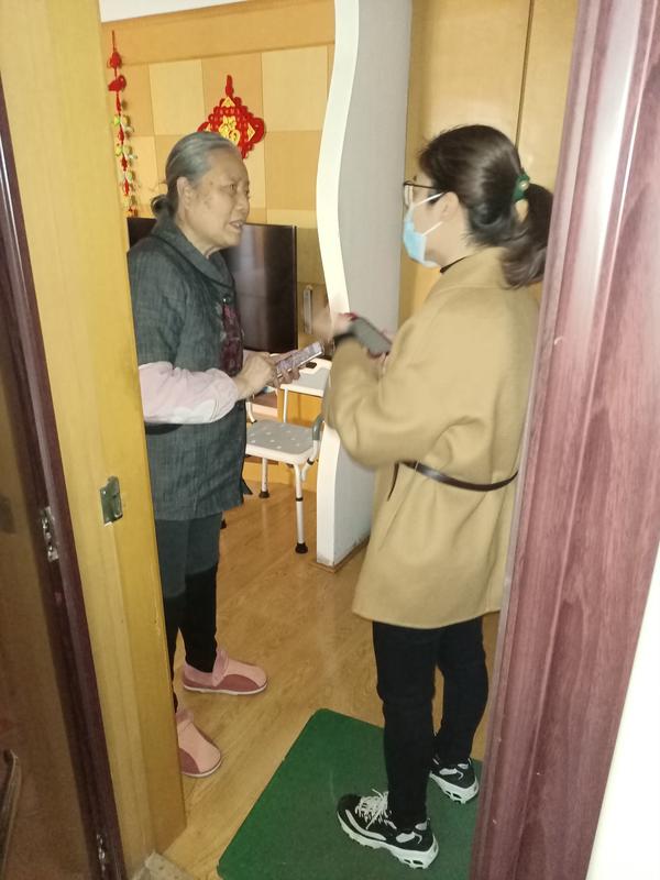 1月8日接到社区通知后,国际教育学院党员教师梁园园在安顿好家里的老人和孩子后,第一时间投入核酸检测大筛工作,做好社区与居民的联络和上传下达、信息登记注册等工作。她入户帮助不会操作的居民完成大筛系统注册,重点关注老弱病残孕等特殊居民。梁园园负责的楼门其中有两户居民,一位九十多岁,一位八十七岁,因身体虚弱不能较长时间排队。她第一时间联系社区报备实际情况和困难,积极协调对接社区工作人员,安排老人在人最少的时段进行检测,减少等候时间,协助其家人将老人搀扶至核酸检测地点,最终顺利完成所负责门栋全员核酸检测工作。