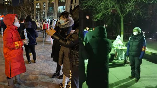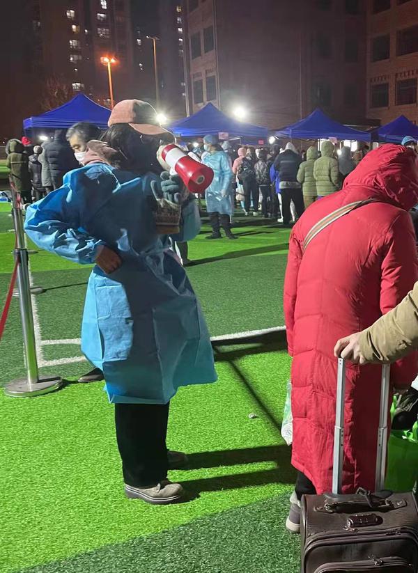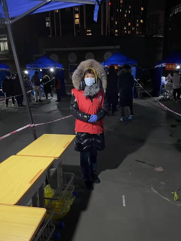 通识教育学院专门用途教师党支部书记刘颖、教研室副主任刘燕同时于1月12日早上6:30接到西楼北里社区服务上岗的通知,积极主动认领任务,团结合作,耐心工作,直至次日凌晨1:00才返回家中。李灵老师克服爱人驻守单位的困难,将家中两个年幼的孩子安顿好,主动加入第二轮核酸检测的志愿服务行列。王溪竹老师克服个人困难,在离家三公里的水晶城社区服务,从早上10:30开始工作,直到凌晨3:30完成任务才回家。任华老师带着上初中二年级的儿子一起参加了珠海里社区的志愿服务活动,对于居民提出的特殊要求,详细解释,耐心劝说,确保居民有序完成检测。李丹老师请阿姨照顾孩子,第一时间到社区报到开展服务,“外面的天气非常冷,站一会儿就全身冰凉,但看到医护人员在寒风中一直坚守,我们也丝毫没有减退服务的热情”。
