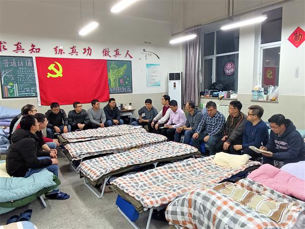 党有号令,我必行动。按照市委、市教育两委部署,我校于18日晚紧急集结17名教职工组成“支援津南区抗疫突击队”奔赴一线,同时成立抗疫突击队临时党支部。近一周时间以来,突击队在临时党支部带领下,参与社区核酸检测、生活保供、值班值守、疏导问询等工作,以实际行动支援津南打赢疫情防控阻击战。1月22日晚,在紧张工作间隙,突击队临时党支部在驻地------咸水沽三中七年四班教室里,以“弘扬伟大抗疫精神,做担当有为天外人”为主题,开展了一次特殊的党日活动。