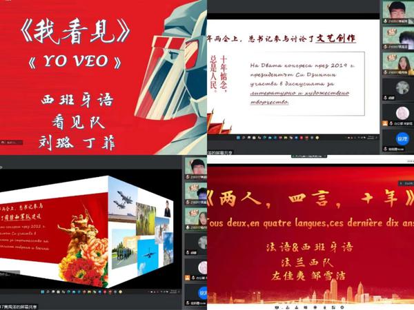 俄语专业作品《我们都是战士》回顾了疫情发生以来人们面临的各种困境,以及在面对疫情时无数志愿者、医护人员挺身而出守护家园的感人故事。来自法语和西班牙语的组合团队以《两人、四言、十年》为题讲述了中国近年来科技发展进步的故事,展现了“中国速度”和“以人为本”的发展理念。意大利语作品《我手里的十年》通过展示十年间我们使用的手机的变化,从一个微小的角度展现了新时代我国工业产业发展取得的成就,人民生活的幸福指数不断提升。保加利亚语的参赛队伍讲述了中国展翅高飞的十年,新时代的中国正大踏步走向世界舞台中央,上演更加精彩动人的中国故事。