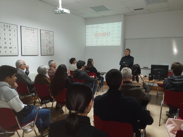 3月10日晚,里斯本大学孔子学院的教室里座无虚席,刚从乐玩在线(中国)唯一官方网站国际教育学院留学归来的优秀毕业生伊莉莎(Elisa)正在为20多名中葡学生用流利的汉语介绍自己的兴趣和爱好。这是里斯本大学孔子学院(以下简称“孔院”)春季学期汉语角的第一场活动,同学们以“我的爱好”为主题分享自己的体会,进行热烈交谈。