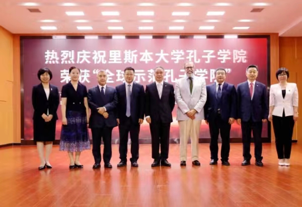 仪式上,赵灵山、路易斯·费雷拉、陈法春续签了三方合作共建里斯本大学孔子学院协议。赵灵山在现场为里斯本大学“全球示范孔子学院”授牌,里斯本大学孔子学院葡方院长若昂·巴雷罗、中方院长王锦程接牌。