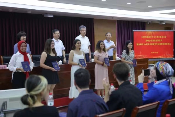 两校领导一致表示,希望以此次签约为契机,在来华留学生“中文+职业技能”学历教育、“职业技能+外语”培训、教材开发、学生实践、文化交流等方面开展更深层次合作,探索“联合育人、职普融通、学分互认、资源互享”的育人机制,共同打造天津高等教育与职业教育融合创新、协同发展新模式,促进职普融通、产教融合,为职业教育、普通教育、国际教育的发展开辟新领域、新赛道,不断提升人才培养质量,积极投身全市“十项行动”,为经济社会高质量发展持续贡献力量。