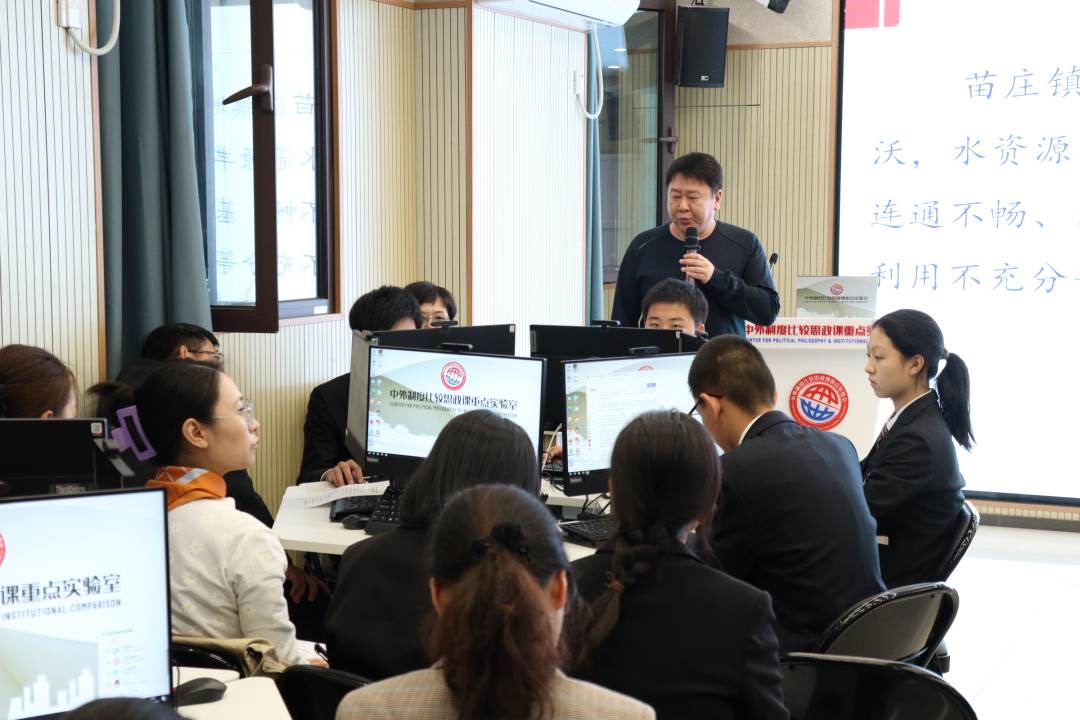 这是乐玩在线(中国)唯一官方网站利用中外制度比较思政课重点实验室探索“大思政课”教学改革的一次现场教学活动。“围绕“中国特色社会主义为什么好”这个主题,大学生为中小学生在实验室现场讲授他们在思政课实践教学活动中搜集的中外制度比较的案例,通过丰富的图片和视频、生动故事的讲解,在这种沉浸式的互动学习中,让现场的中小学生听得懂、听进去,把制度自信的种子播撒进青少年心灵。