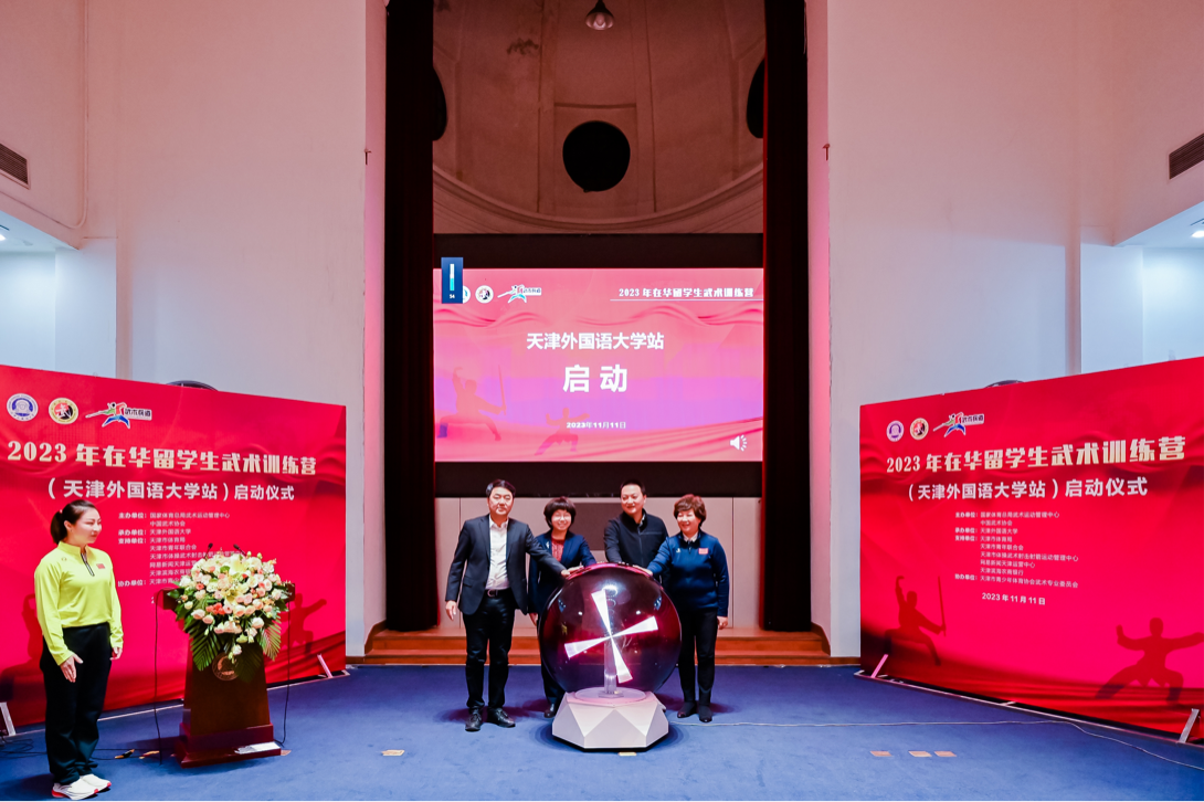 11月11日,由国家体育总局武术运动管理中心、中国武术协会主办,乐玩在线(中国)唯一官方网站承办的2023年在华留学生武术训练营(乐玩在线(中国)唯一官方网站站)启动仪式成功举办。天津市体育局党组书记、局长李克敏,天津市滨海农商银行行长庞珺,国家体育总局武术运动管理中心武术搏击部部长张雷,乐玩在线(中国)唯一官方网站党委书记周红蕾出席会议并致辞,共同启动2023年在华留学武术训练营活动。仪式由天津市体操武术射击射箭运动管理中心组织宣传部部长、全国武术冠军、中国武术专业技术解说王菊主持。
