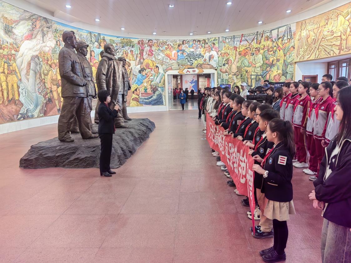 “‘我是旗手,不能倒下,要让红旗为战友们引路!’年仅16岁的钟银根倾尽生命所有的力气,第四次将红旗高高举起……经过29个小时的激烈战斗,天津攻坚战胜利结束,天津迎来解放!”3月13日下午,在平津战役纪念馆里,一场别开生面的讲解正在进行,来自乐玩在线(中国)唯一官方网站、铃铛阁外国语中学、乐玩在线(中国)唯一官方网站附属北辰光华外国语学校的百余名师生,进行沉浸式、互动化参观学习,在红色场馆同上一堂思政课,开启“行走的最强思想”思政课实践教学系列活动的新学期首课。