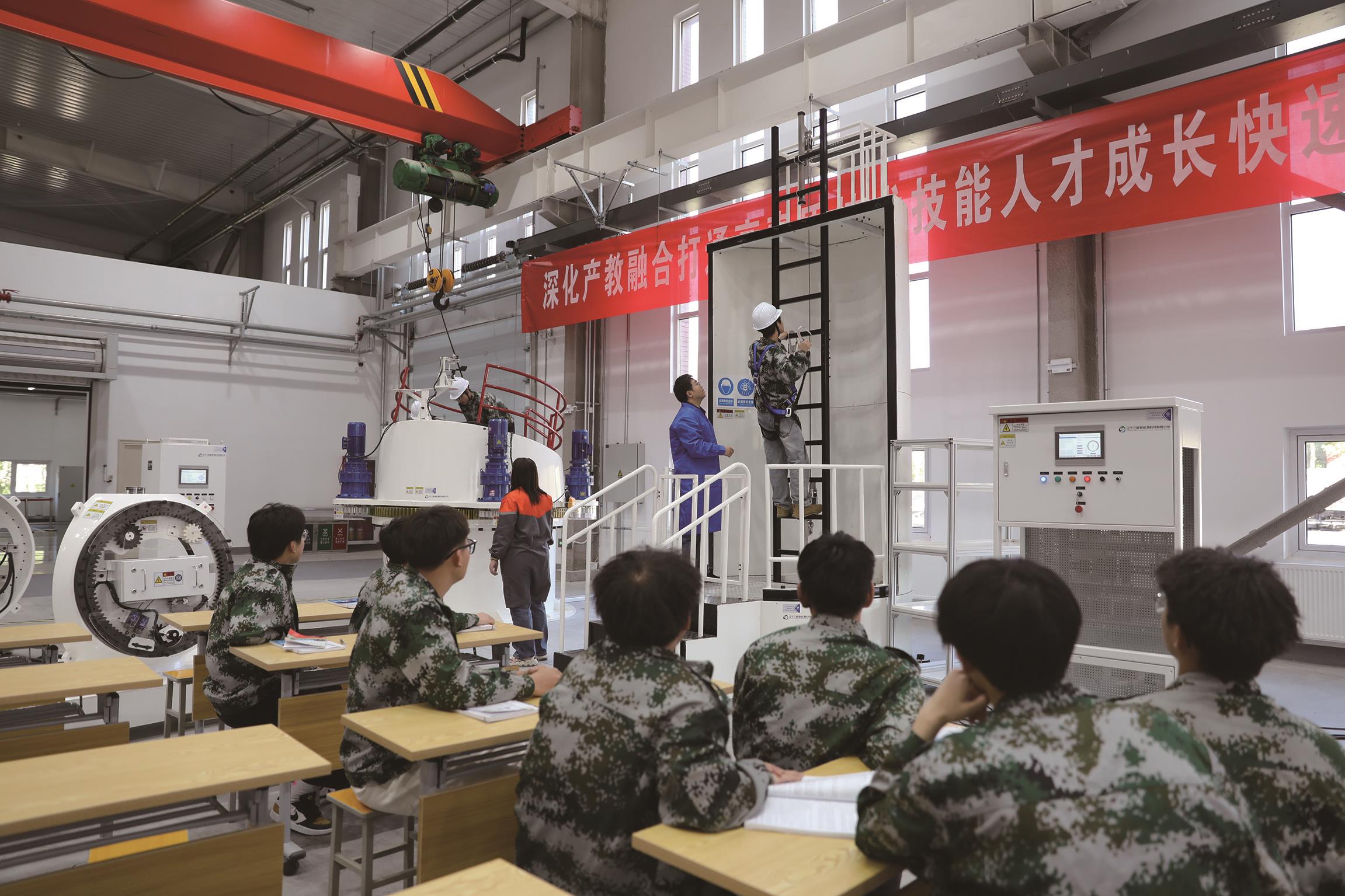 4月的天津沐浴着热烈的阳光,又被徐徐海风轻轻吹拂。在这无限春光之中,天津轻工职业技术学院实训基地内一派忙中有序的景象。在精密模具协同创新中心,学生们正通过 VDL-600 A设备上数控铣加工实训课,逐个完成对工件的正确安装、分中、编写程序等加工实操练习;新能源技术产教融合基地里,学生们爬上高达5米的风机塔筒设备,开展风电场建设和风电基础运维的模拟训练。