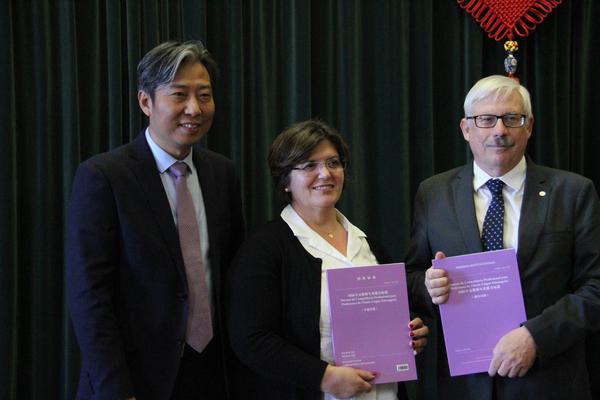 首发仪式上,郁云峰向保罗·阿尔伯特、卢尔德·安德里诺赠送了新书。