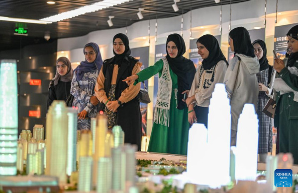 Omani youngsters visit Tianjin Planning Exhibition Hall in north China's Tianjin Municipality, Aug. 13, 2024. Twenty-two youngsters from Oman are on a two-week study tour in Beijing and Tianjin to experience the Chinese culture.