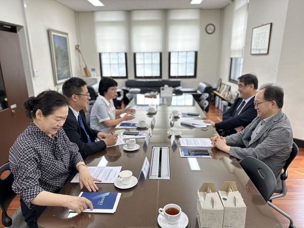 代表团还会见了忠清南道公州市永明高中代表团,听取了永明高中情况介绍,并见证了顺天乡大学孔子学院与永明高中签署新设孔子课堂合作意向书。