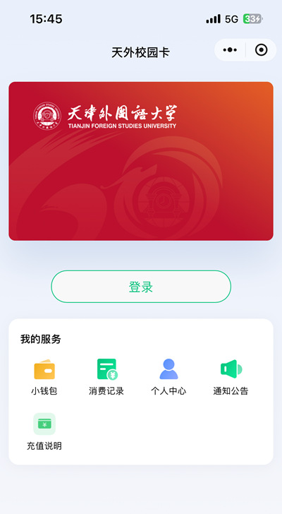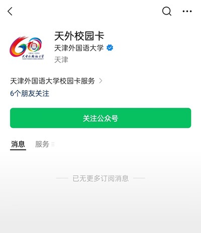 1.微信扫描以下二维码,关注“天外校园卡”公众号