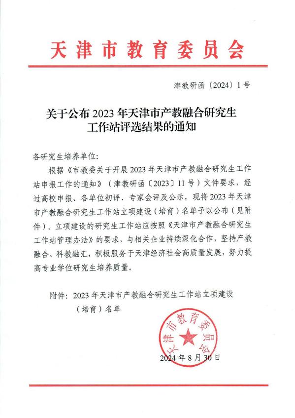 学校将以此为契机,持续推进党的二十届三中全会精神在研究生教育全过程落实落细,不断深化研究生教育改革。学校将按照《天津市产教融合研究生工作站管理办法》的要求,与相关企业持续深化合作,坚持产教融合、科教融汇,努力提高专业学位研究生培养质量,推动研究生教育内涵式高质量发展。