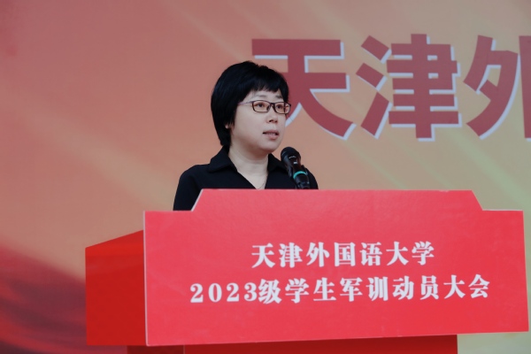 英语学院学生于清涵和国际商学院学生冯思思代表2023级全体参训学员发言并作出庄严承诺,在接下来的21天训练中,要坚决服从命令、听从指挥;尊重教官、团结同学;严守纪律、遵守规章;吃苦耐劳、勤学苦练,以优异的训练成绩践行自己的责任与担当。