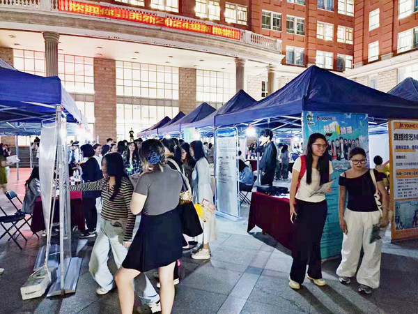 恰逢本年度迎新工作刚刚结束,招聘活动也吸引了不少大一新生的目光。许多新生怀着强烈的好奇心走进招聘活动现场,在各展位前驻足观看,认真阅读企业的招聘信息,不时与招聘人员交流几句。一位新生表示:“虽然我们才刚进入大学,但提前了解一下未来的就业岗位和要求,能让我们更有目标地规划大学生活,也对未来的大学学习更有信心。”此外,活动现场一如既往地设置了人社政策咨询窗口、简历“问诊”服务、线上直播带岗及AI人工智能规划指导,为毕业生提供多层次、全覆盖的就业服务。
