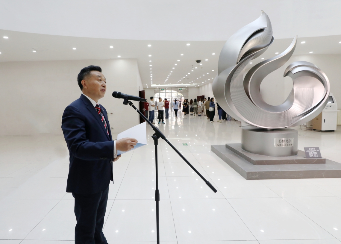 周红蕾代表学校对天津美术学院设计、制作团队的辛勤付出以及北京校友会的捐赠表示感谢。她表示,主题雕塑既体现了学校的办学特色和教育理念,又展现了师生们的精神风貌和追求。雕塑中的每一个细节都经过精心打磨,力求完美呈现学校的独特魅力和精神内涵。
