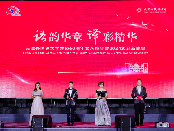 晚会以“语韵华章 译彩精华”为主题,分为“峥嵘岁月颂芳华”“中外求索承弦歌”“奋楫扬帆逐新梦”三大篇章。通过师生代表、校友代表的精彩演绎,回顾了天外走过的甲子春秋,展现了一代代天外人奋楫扬帆、以“译”求同的文脉传承,和中外求索、“语”通世界的使命担当。