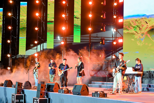 晚会第三篇章——奋楫扬帆逐新梦,青年学生通过乐队弹唱《yellow》、舞蹈《留声青春》、朗诵《吾志所向——60载慷慨激昂》等丰富多彩的艺术形式,共话梦想与未来。