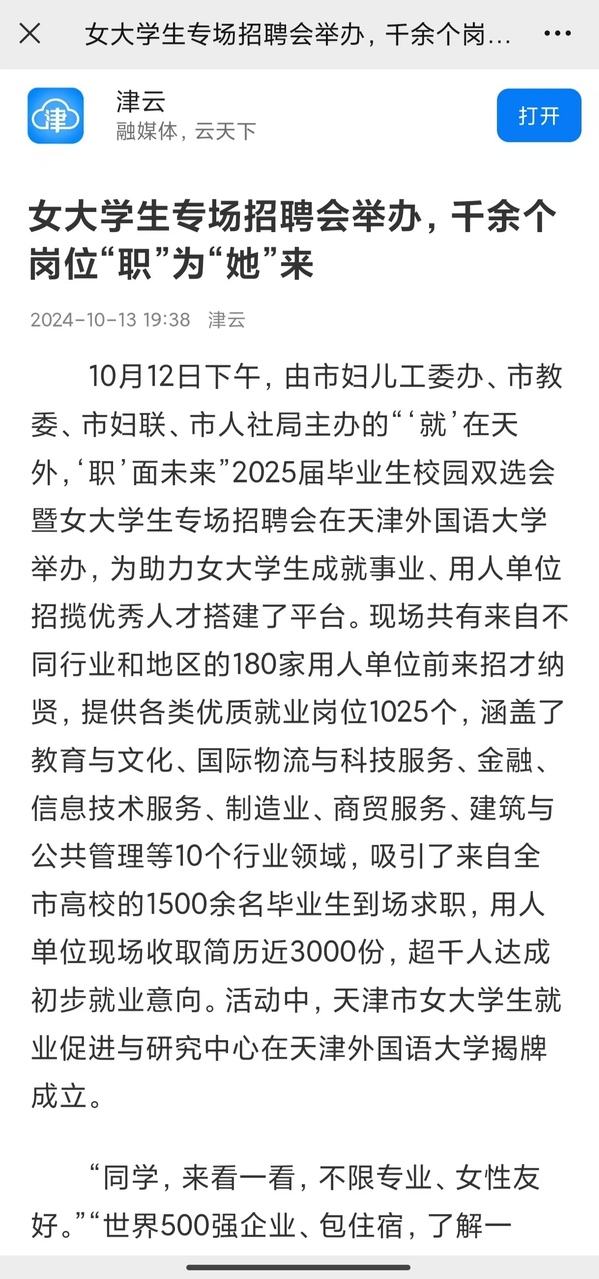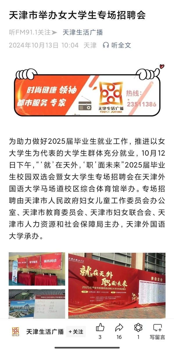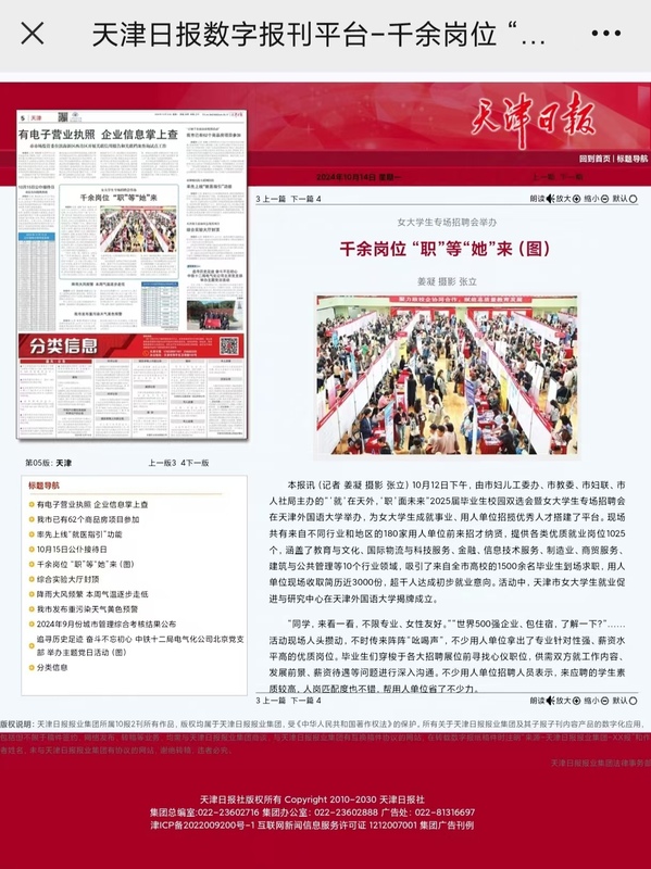 为助力做好2025届毕业生就业工作,推进以女大学生为代表的大学生群体充分就业,近日,“‘就’在天外,‘职’面未来”2025届毕业生校园双选会暨女大学生专场招聘会在乐玩在线(中国)唯一官方网站马场道校区综合体育馆举办。本次招聘会由天津市人民政府妇女儿童工作委员会办公室、天津市教育委员会、天津市妇女联合会、天津市人力资源和社会保障局主办,乐玩在线(中国)唯一官方网站承办。本次招聘会岗位覆盖面广、岗位数量多,现场共有来自不同行业和地区的180家用人单位参加招聘,提供就业岗位千余个,岗位范围涉及教育、生产制造、管理、销售、电子商务等多个领域,吸引1500余名学生参加,并获得多家媒体关注和报道。