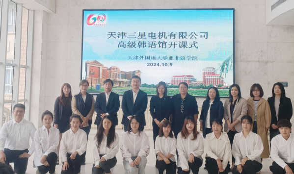 为深入贯彻落实习近平总书记的重要讲话精神,进一步落实“产教融合”战略部署,以产教融合推动发展新质生产力,近日,乐玩在线(中国)唯一官方网站亚非语学院举办第28期“韩国语高级生活馆”培训。天津三星电机有限公司team长黄光宣一行,天外亚非语学院党总支书记张海梅、院长朵宸颉、学院相关负责人、教师代表及第28期学员参加开课仪式。