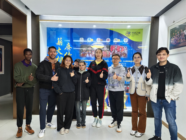 On October 18, the Join the Joy, Join the Tianjin Marathon thematic event, hosted by CRI Online, arrived at the Tianjin Bohai Bank Women's Volleyball Club. International sports culture ambassadors from Gabon, Armenia, Hungary, the United States, Pakistan, Venezuela, and other countries visited the training session of the Tianjin Women's Volleyball team to experience their fighting spirit and excellent skills firsthand.