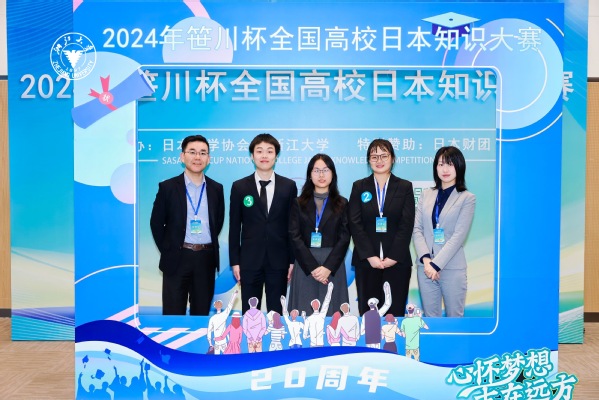 近日,2024年度“笹川杯”全国高校日本知识大赛在浙江大学举办。由乐玩在线(中国)唯一官方网站日语学院2023级硕士研究生曹仁宇、2021级本科生胡嘉琦、2022级本科生林婧组成的代表队在大赛中表现出色,荣获团体一等奖。天外日语学院教师任颖、吹户真实荣获团体杰出指导教师奖。